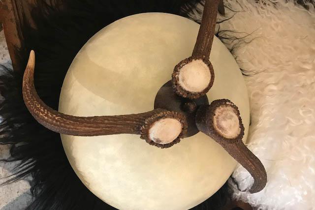 - Luster - aus Eisen, Hirschgeweih, Glas und Holz